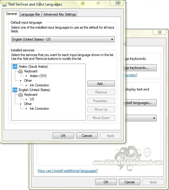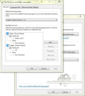 Lepas tu anda klik butang add (rujuk gambar di atas) dan akan keluar senarai bahasa yang ditawarkan. Carilah bahasa Arab, saya prefer Arab Saudi kerana ia menggunakan Arab baku dan Bahasa Arab ni pun dia ada lughoh yang berbeza. Dah siap klik-klik yang mana anda mahu tu, tekan je ok. Lepas tu Apply yang mana patut... hehehe...