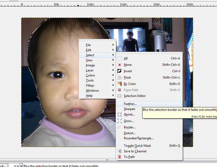 matlamat kita sekarang kita nak buang gambar tv yang tengah main cerita apa tu, sofa, dan segala macam lagi kat belakang tu, kita nak gambar baby ni je yangg ada dalam gambar. Oh, baby ni nama dia Husna :)