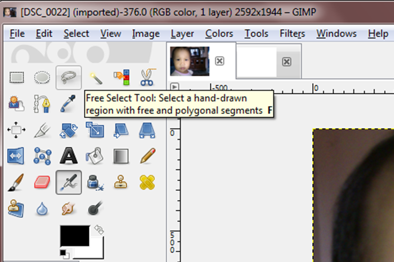 Next, kembali pada gambar yang kita nak edit tu (klik kat gambar kecik atas) dan pilih Free Select Tool.